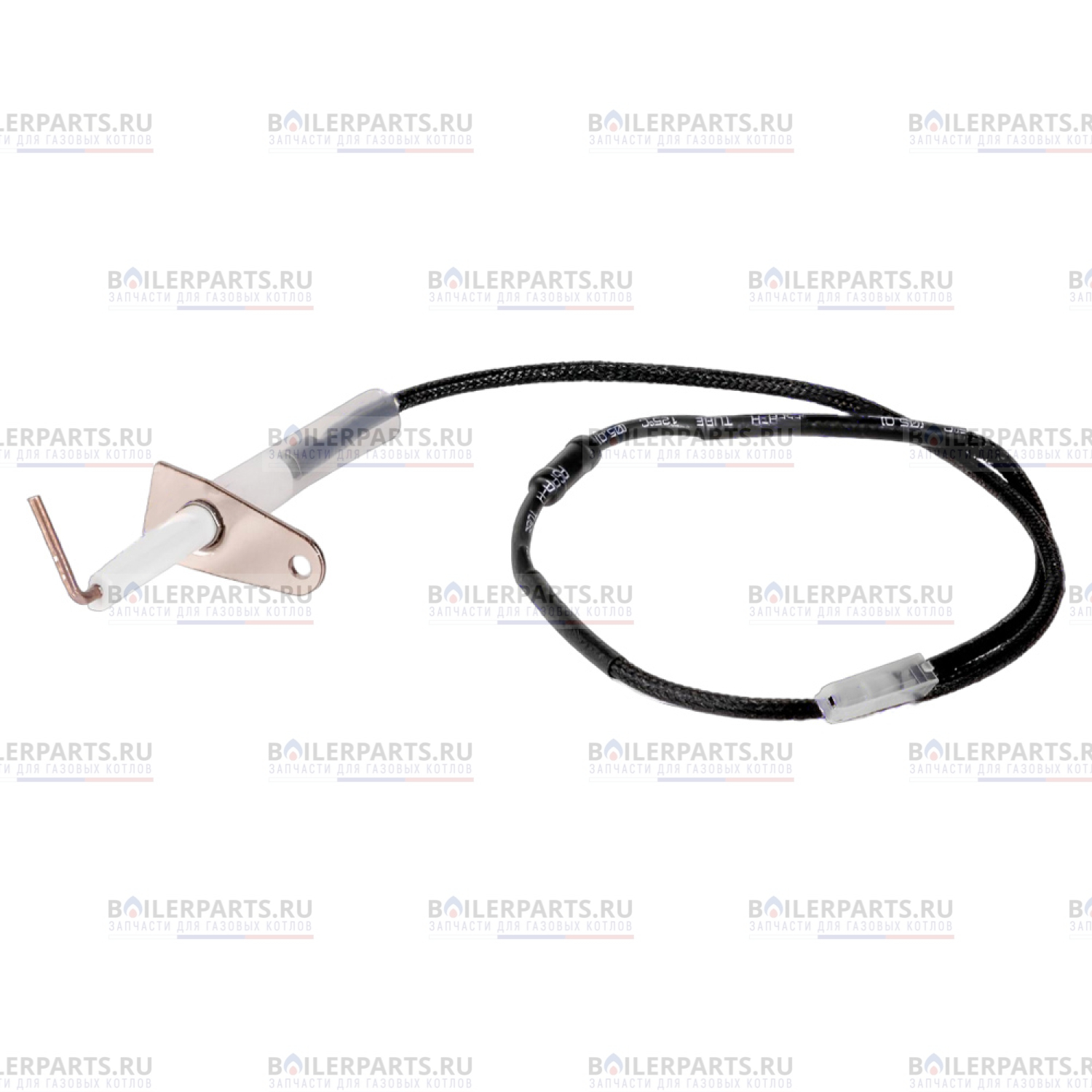 Электрод розжига предназначен для поджигания запальной горелки за счет искры между ее корпусом и собственным стержнем из металла. Представляет собой металлический стержень с керамическим изолятором. Подключается с помощью кабеля к кнопке пъезорозжига. Процесс розжига осуществляется посредством создания искры высокого напряжения. В минимальной необходимой степени центральный электрод может попадать в пламя.