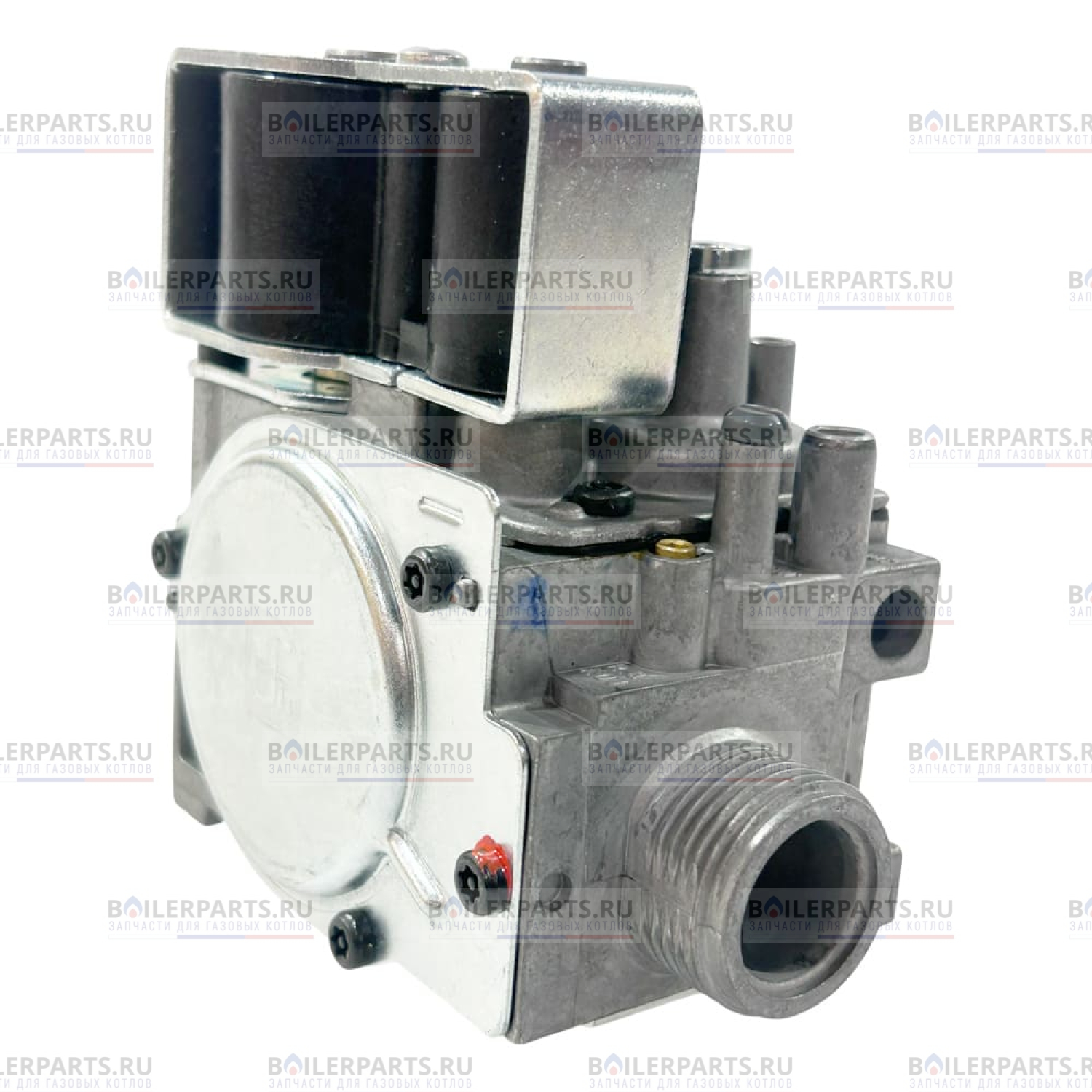 Запирающие катушки соленоида подключены параллельно, и при подаче на их обмотки напряжения с платы управления котлом дают возможность подачи газа клапаном. Количество газа подаваемое при работе катушек можно регулировать регулятором минимальной подачи газа на клапане. Если подача газа или электричества прекращается, давление пружины обеспечивает автоматическое закрытие клапана. Регулировка выходного давления осуществляется сервосистемой. Если выходное давление превышает допустимое значение модулятора, клапан регулировки открывается и под главной сервомембраной падает давление, закрывая основной клапан. Таким образом выходное давление принимает заданную величину. И наоборот, если выходное давление ниже заданного уровня, клапан регулировки закрывается, давление возрастает, открывая газовый клапан.