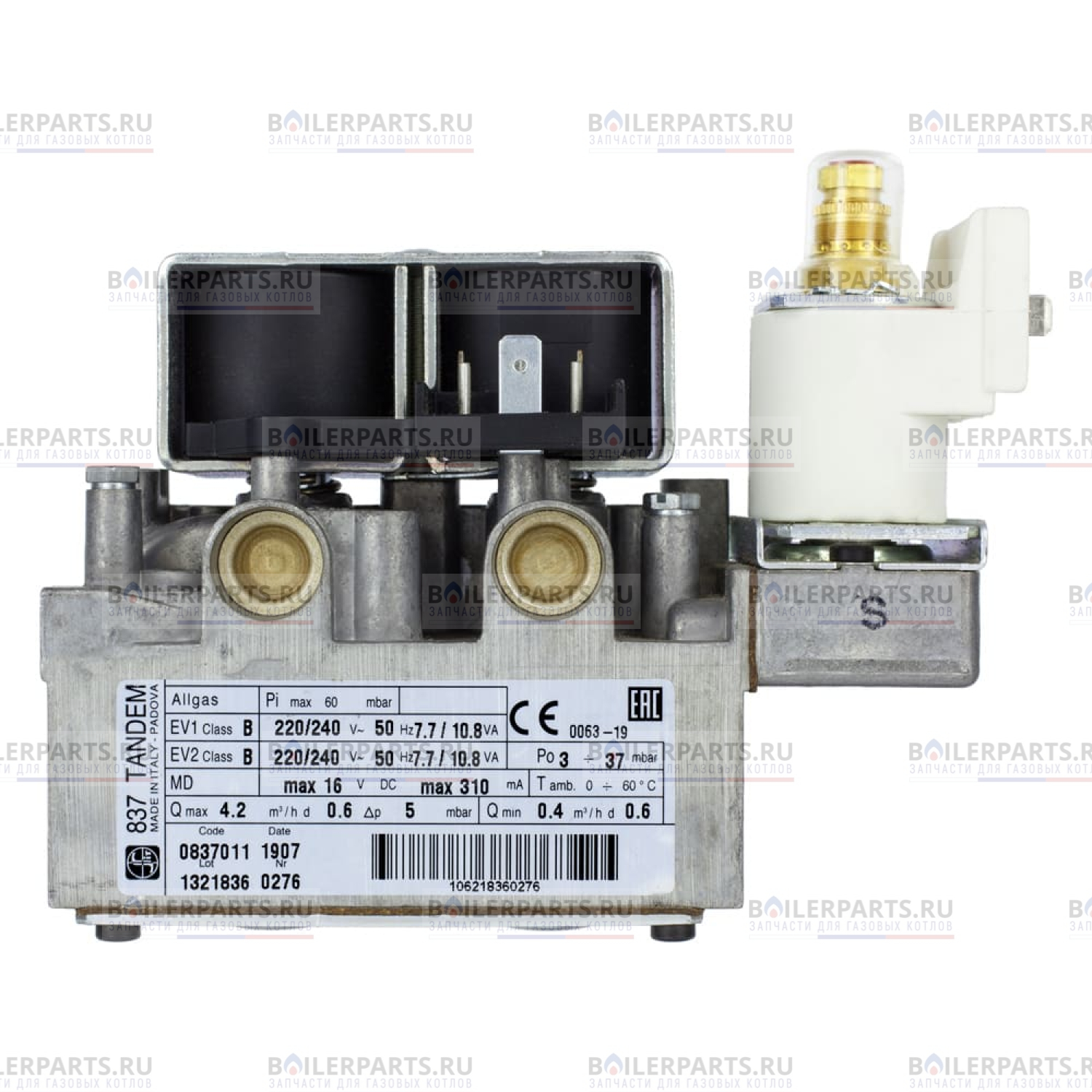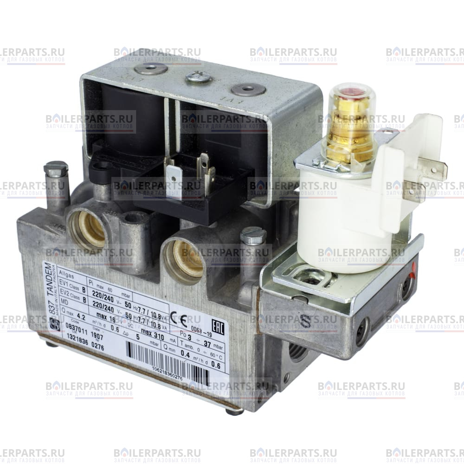 Газовый клапан - газовый блок с 2 электромагнитными клапанами и 1 непрерывным электрическим модулятором давления газа.