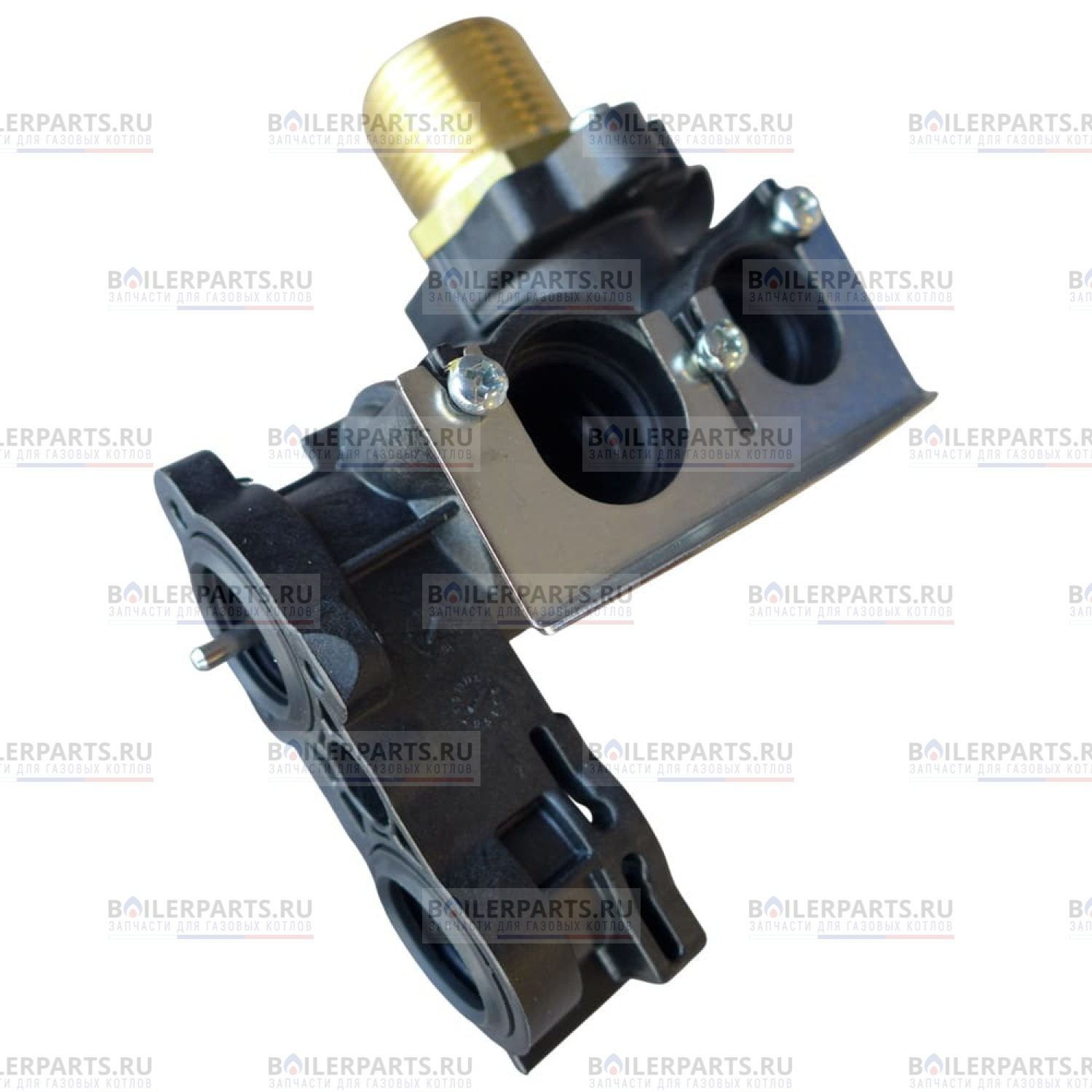Трехходовой клапан представляет собой компонент котла, который используется для управления потоком теплоносителя или воды в системе. Он имеет три выходных порта, что позволяет перераспределять поток жидкости между различными частями системы в зависимости от требований.