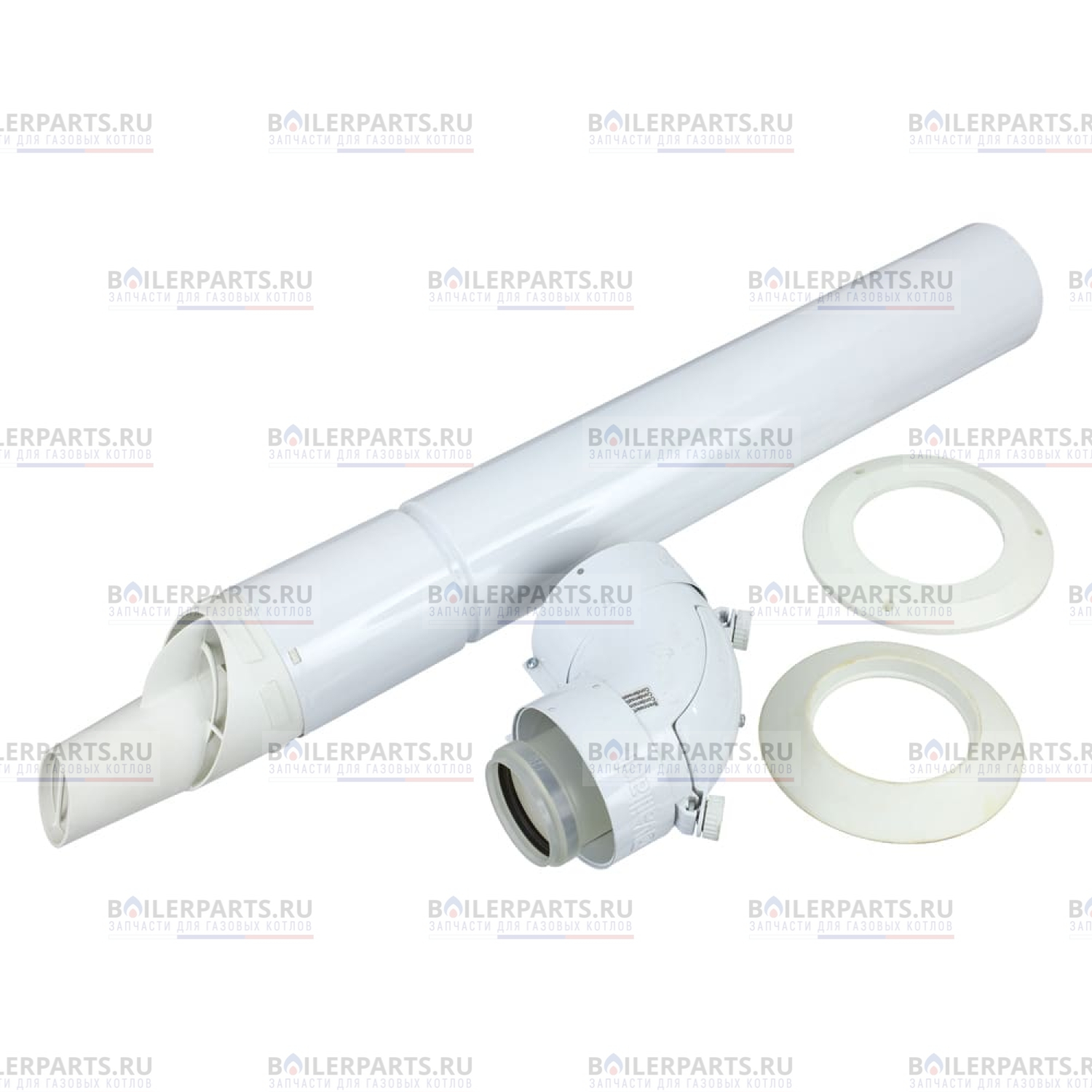 Базовый комплект для горизонтального прохода через стену или крышу 60/100 PP. Состоит из участка трубы для притока воздуха / отвода продуктов сгорания длиной 0,8 м, отвода 87° с ревизией (в комплекте с соединительными хомутами), двух декоративных розеток (внешней и внутренней) для оформления прохода через стену, крепёжного и уплотнительного материала.