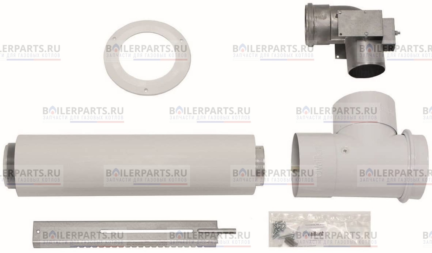 Горизонтальный комплект Vaillant предназначен для прохода дымохода или воздуховода. Используется в монтажных работах по установке коаксиального дымохода/воздуховода. Данный участок является коаксиальной системой «воздух-продукты сгорания» или «труба в трубе» с внутренней для отвода продуктов сгорания (дымовая часть) и внешней трубой для подвода воздуха (воздуховод).
