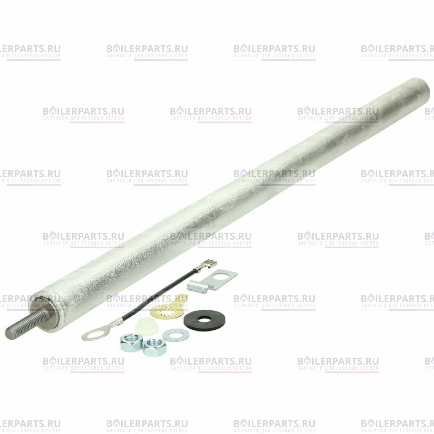 Магниевый анод предназначенный для предупреждения образования накипи в накопительном бойлере и защиты металлической поверхности от коррозии. Основная проблема всех водонагревательных приборов - это скопление накипи, которое затрудняет нагрев сантехнической воды. Использование анода позволяет избавиться от этой проблемы. Со временем эксплуатации анод полностью растворяется, впитав в себя все инородные частицы некачественного теплоносителя, бойлер может остаться без защиты, и по истечению небольшого промежутка времени выйти со строя.