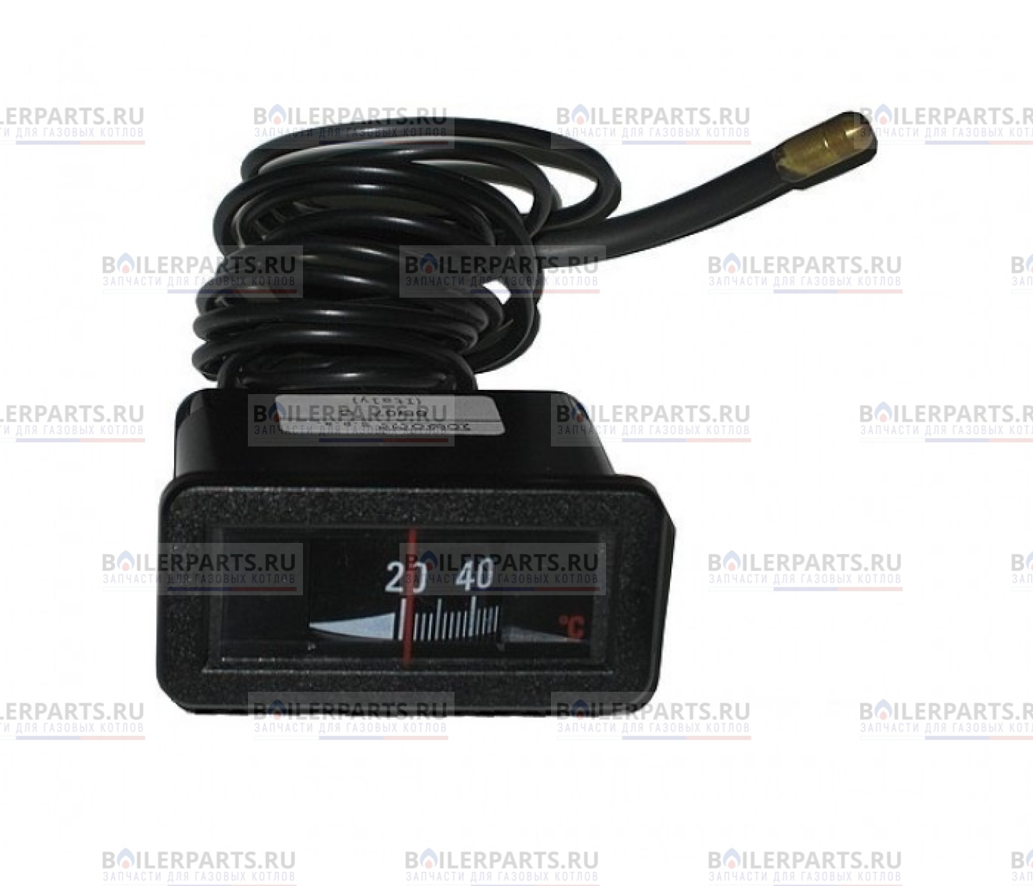 Термометр предназначен для непрерывного измерения температуры жидкостей или газов, нейтральных к воздействию на металл для газовых котлов. Измерение температуры производится измерительной головкой на конце капиллярной трубки. Принцип измерения основан на использовании расширения жидкости, содержащейся в капиллярной трубке, которая находится под воздействием температуры, изменяет свой объем и вызывает отклонение указателя на фоне циферблата термометра. Термометр представляет собой прямоугольный корпус с белым циферблатом, с черными надписями, красной стрелкой и медным капилляром.