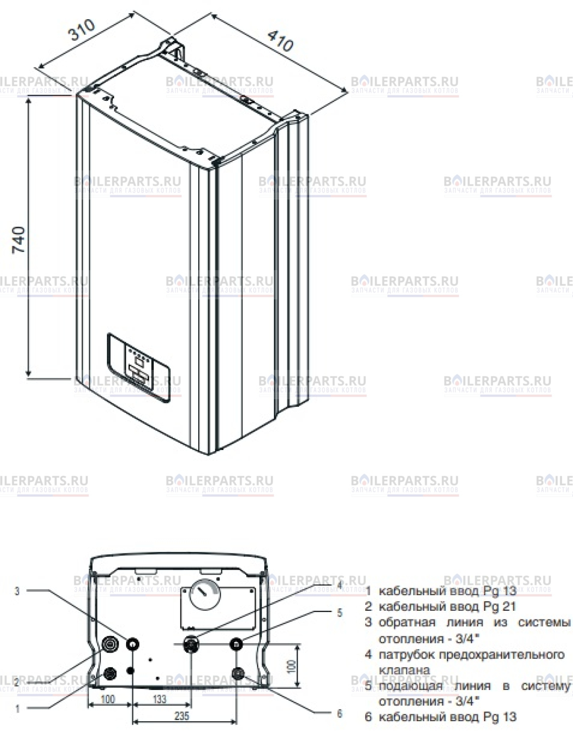- подключение труб вход/возврат: 3/4";