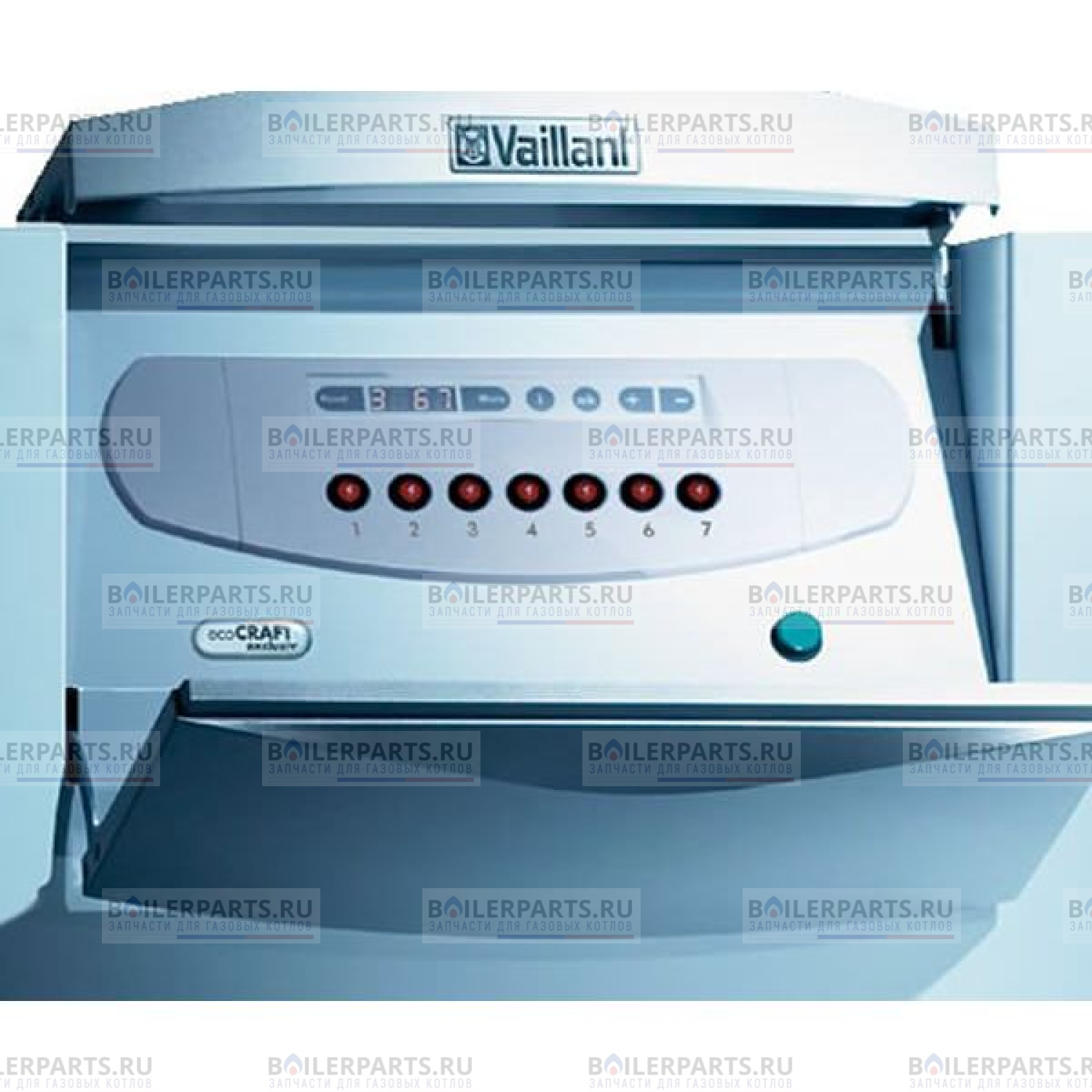 - стандартная панель управления Vaillant с дисплеем и подсветкой. Индикация не только температуры, но и давления;