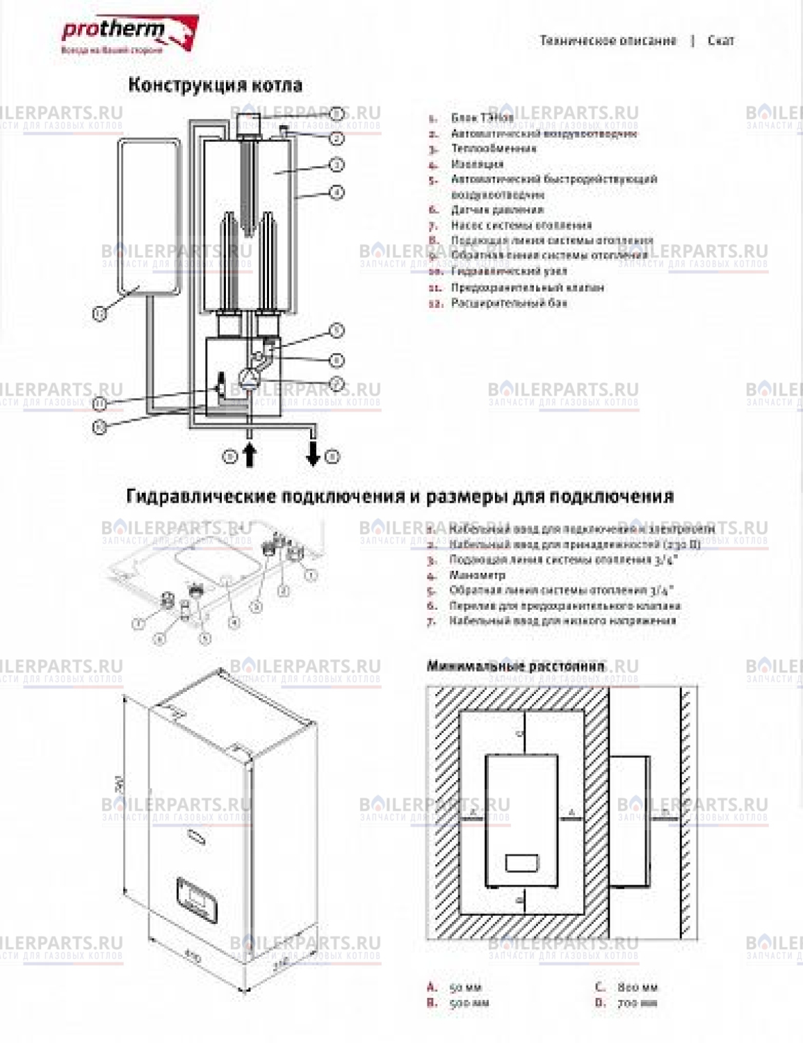 Электрический котел Protherm Скат 9 KE/14 одноконтурный для настенного монтажа предназначенный для обеспечения отоплением и горячей водой с использованием дополнительного накопительного бойлера. Тепловая мощность 9 кВт позволяет обеспечить отоплением малометражные квартиры, дачные дома, коммерческие помещения площадью до 72 м2. Благодаря отсутствию камеры сгорания не требует дымоходной системы и притока свежего воздуха, котел работает от электрической сети с напряжением 220 или 380 В. Электрический котел имеет ряд преимуществ: легок в монтаже; более высокий КПД 99,5%; бесшумная работа; возможно быстро и точно регулировать. Может использоваться как резервный или дополнительный источник тепла в отопительных системах, работающих на основе природного газа или твердого топлива. Производителем встроена цифровая шина eBus, благодаря которой есть возможность подключить терморегуляторы Protherm Thermolink P, Protherm Exacontrol 7, Vaillant eRELAX, Vaillant multiMATIC VRC 700/6.