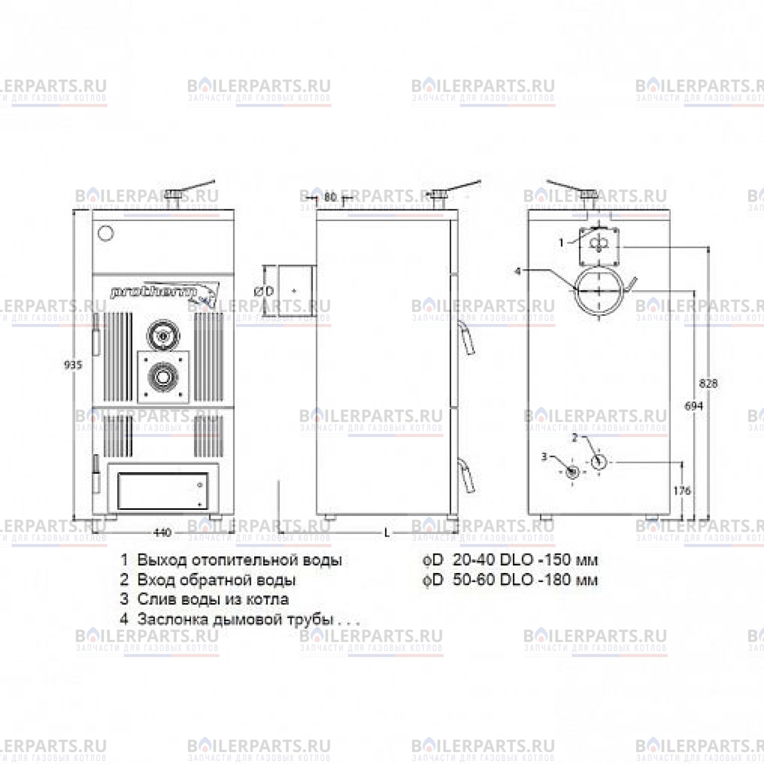 - диаметр дымохода: 150 мм;