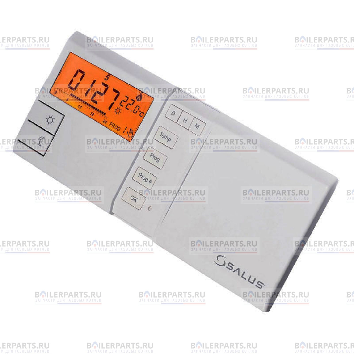 Программатор имеет приятную желтую (оранжевую) подсветку и информативный кристаллический дисплей внушительных размеров. Понятный, удобный интерфейс программатора для котла, высококачественные материалы и технологичность программатора делают его незаменимым устройством для удобства и комфорта в доме, а также в некотором смысле атрибутом декора. Программатор легко подключается к любому отопительному устройству при помощи двухжильного провода. Работает (таймер) программируемый термостат в диапазоне температуры от 5 до 35 градусов, с точностью настройки в 0,2 градуса. Подключается недельный термостат к котлу с помощью специальных независимых контактов, на клеммы “TA”.