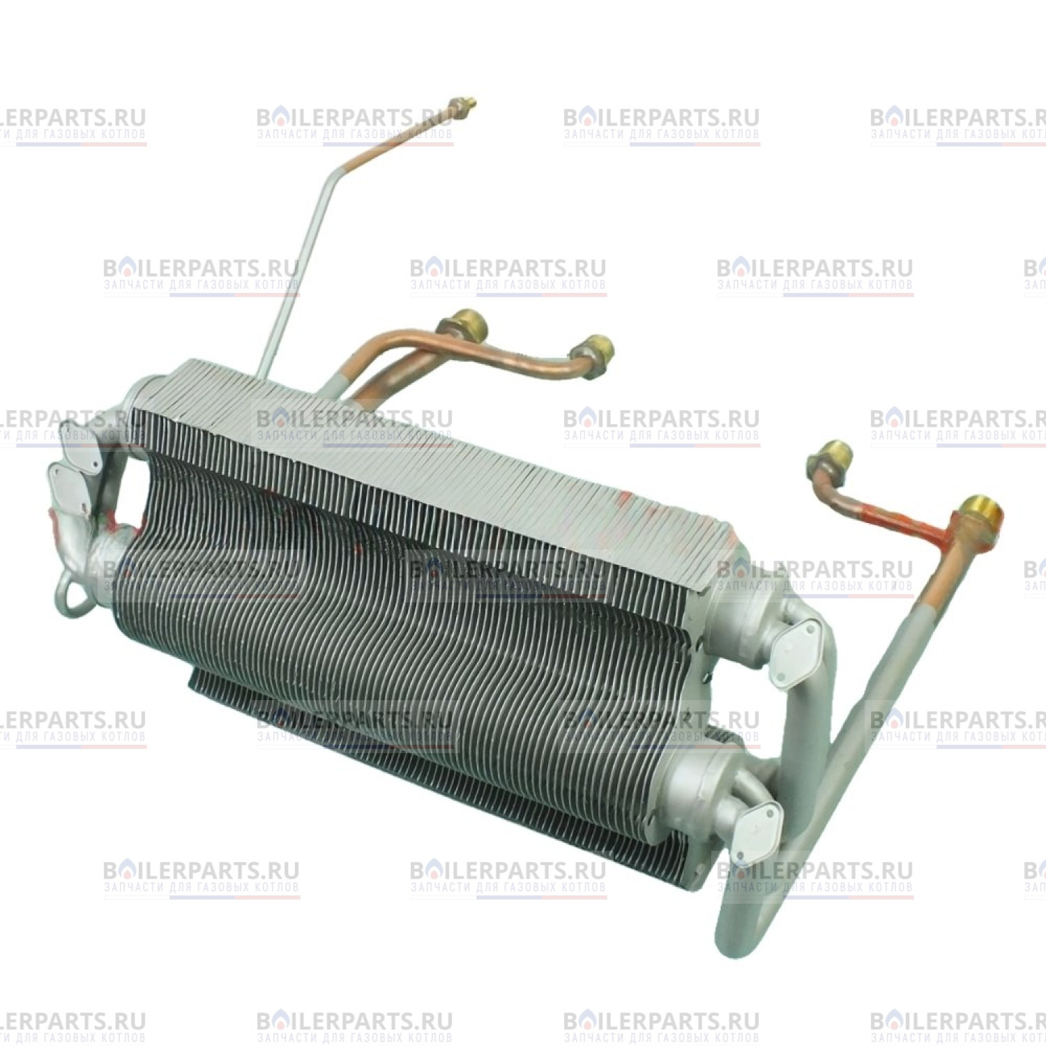 Теплообменник битермический предназначен для обеспечения нагрева теплоносителя отопления и проточной воды горячего водоснабжения, непосредственно в камере сгорания котла.
