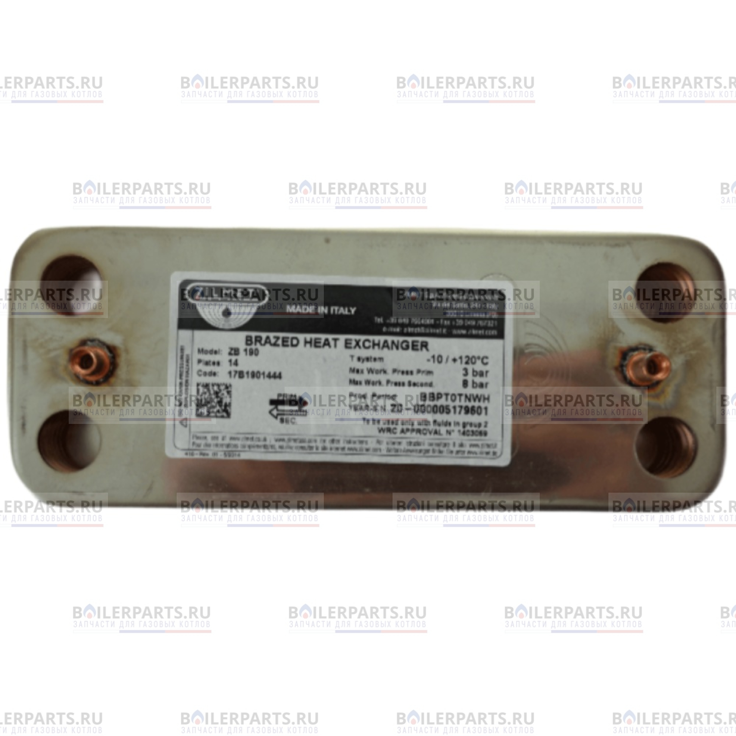 Завод производитель имеет право менять конструкцию Теплообменника пластинчатого 14 пластин для котлов Ariston 17B1901444 без согласования с заказчиком или владельцем оборудования, менять их внешний вид, конфигурацию и упаковку, что не влияет на их функциональные способности и на работу газового оборудования.