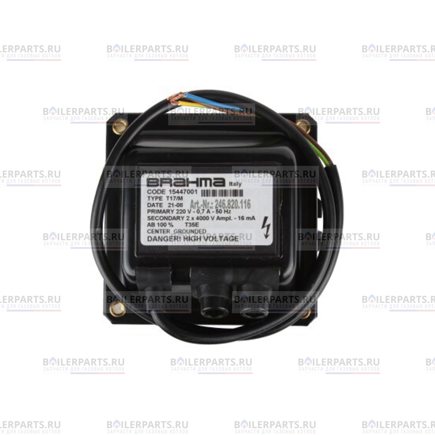 Завод производитель имеет право менять конструкцию Трансформатора розжига Brahma T17/M 15447001 без согласования с заказчиком или владельцем оборудования, менять их внешний вид, конфигурацию и упаковку, что не влияет на их функциональные способности и на работу газового оборудования.