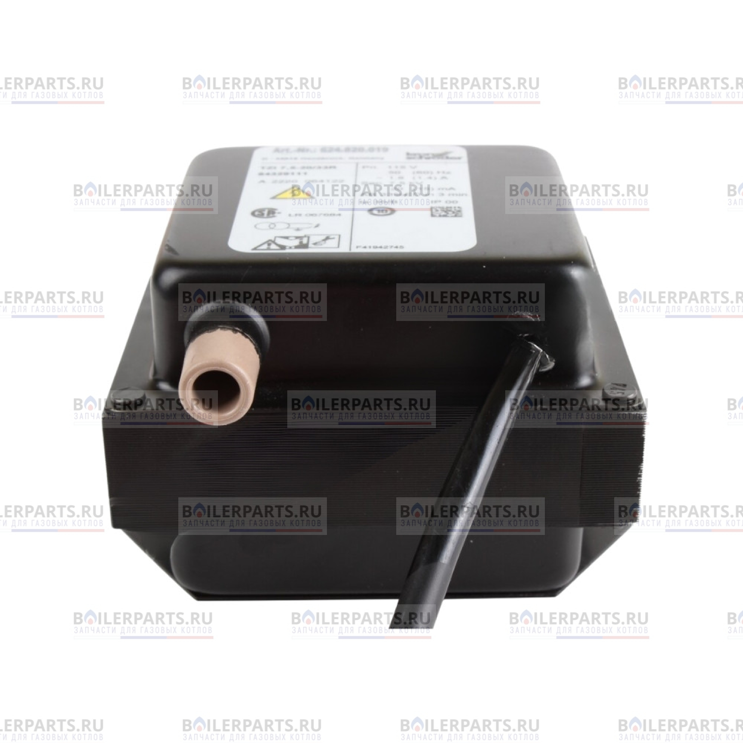 Предназначен для повышения входящего напряжения до необходимых параметров (7,5 кВ) и получения поджигающей искры для воспламенения топлива. Оснащен компактным закрытым корпусом, соответствующим стандарту электрозащиты IP 20.