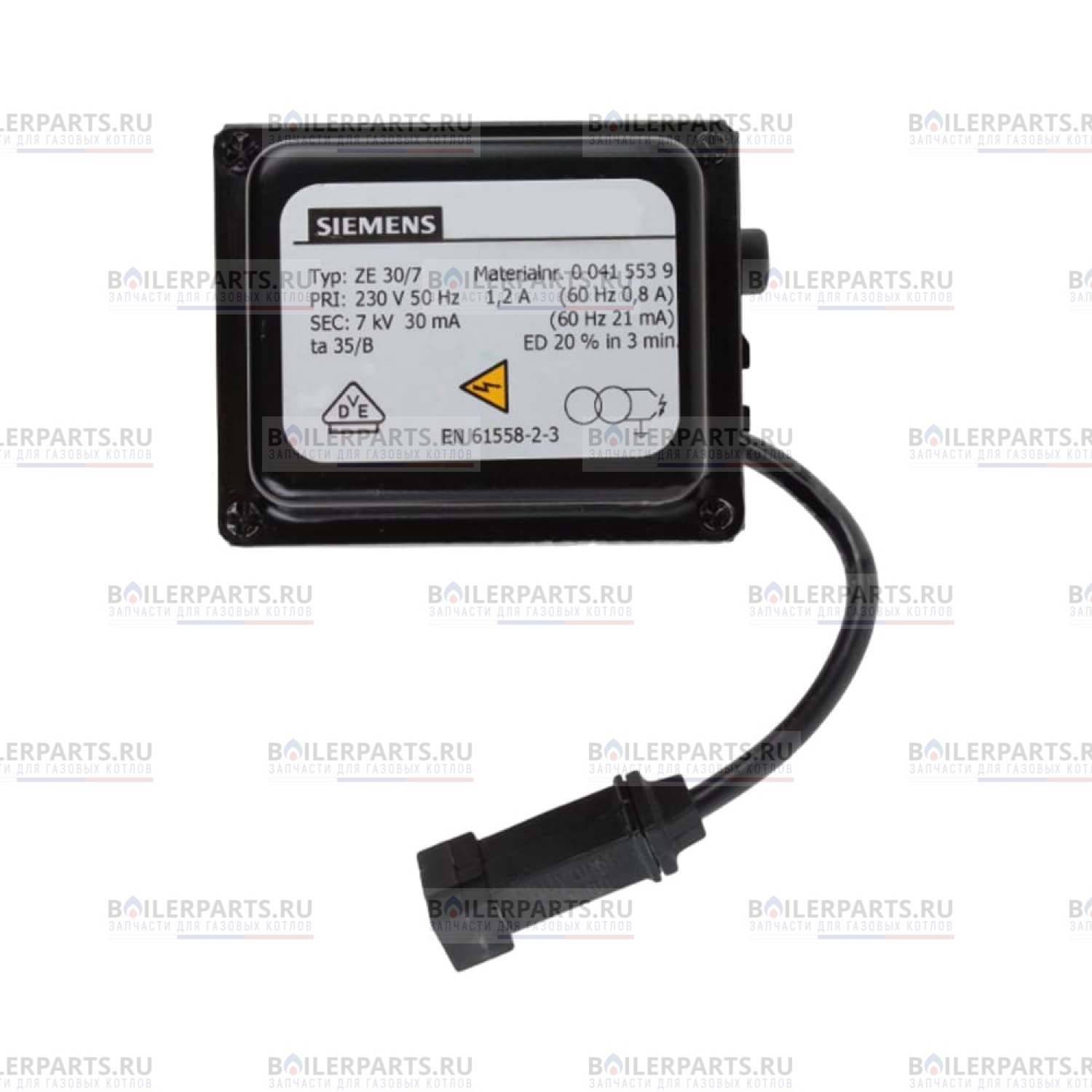 Завод производитель имеет право менять конструкцию Трансформатора розжига Siemens ZE 30/7 0415109 для котлов Elco 65312162 без согласования с заказчиком или владельцем оборудования, менять их внешний вид, конфигурацию и упаковку, что не влияет на их функциональные способности и на работу газового оборудования.