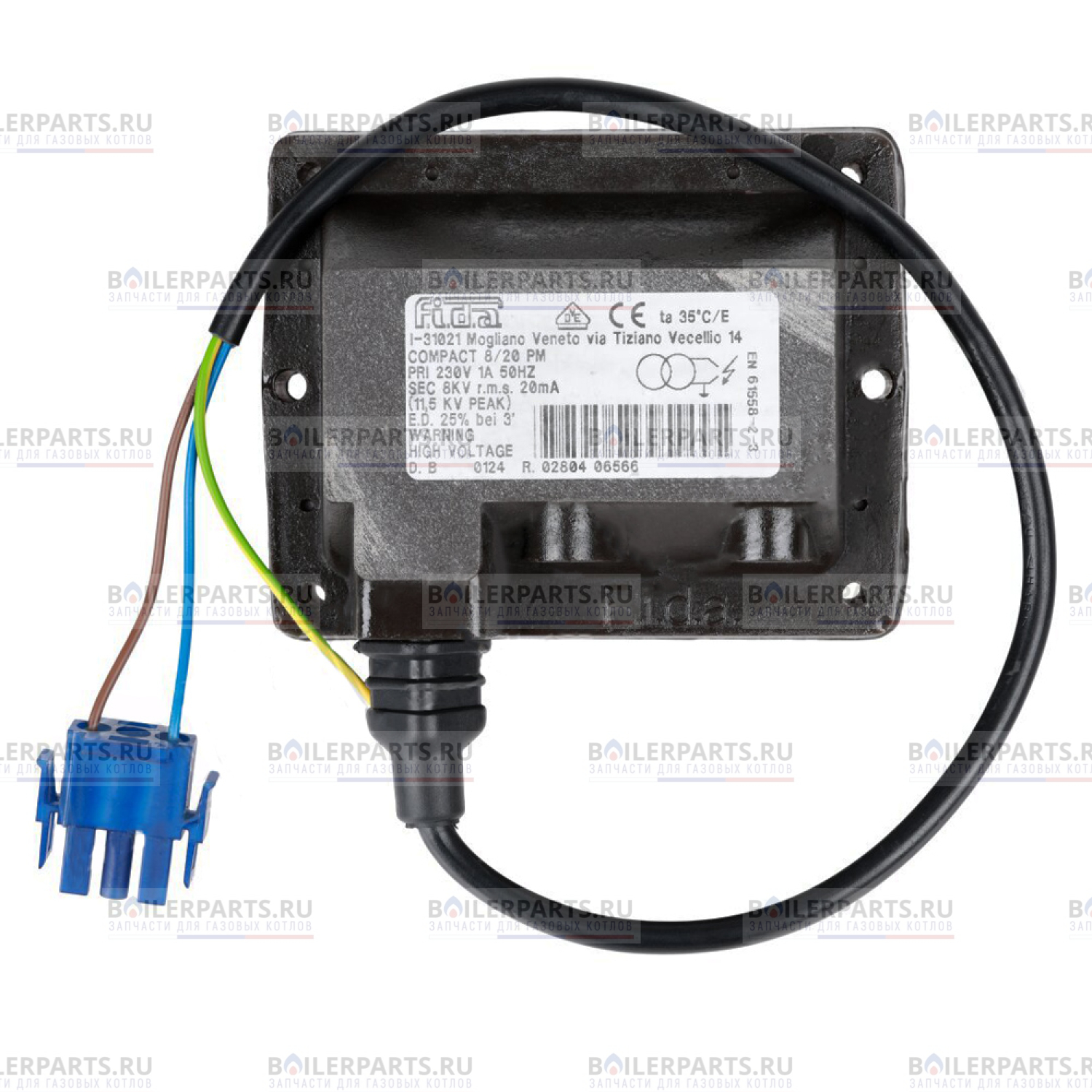 Трансформатор розжига предназначен для повышения входящего сетевого тока 230 Вольт в ток высокого напряжения 8 кВ для быстрого и бесшумного поджига топливной смеси высоковольтным искровым разрядом.