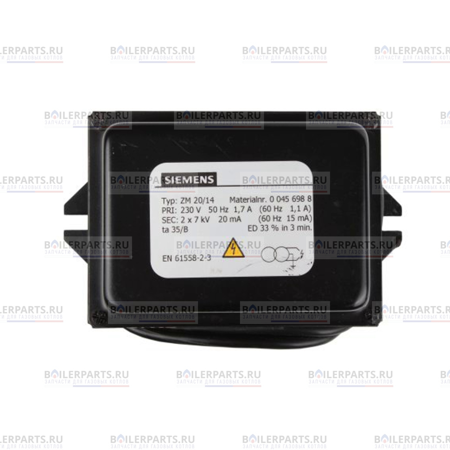 Завод производитель имеет право менять конструкцию Трансформатора розжига Siemens ZM 20/14 00456988 без согласования с заказчиком или владельцем оборудования, менять их внешний вид, конфигурацию и упаковку, что не влияет на их функциональные способности и на работу газового оборудования.